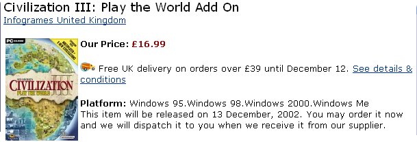 This is by no means a mistake from Firaxis though. The marketing and distribution (i.e. Infogrames and their int'l distributors) is at fault here. They must have some kind of problem with channeling the product into the markets