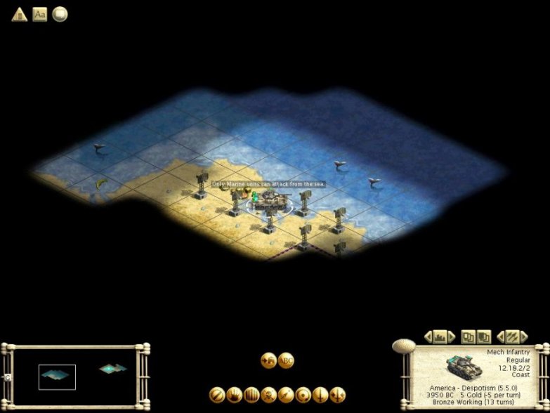In MP, where you can argue that this trick is not an "exploit" anymore, there is still a problem since each island nation can just close themselves off from attack for 3/4 of the game (get a Worker pump going an you have no need for defense in your homeland!). This makes for very boring games (unless you're playing the Vikings).