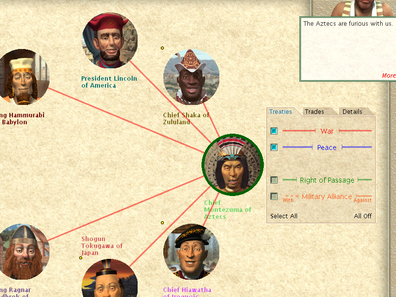 Oh, we still plan to get some Aztec cities. We don’t want pour neighbours to get too powerful, after all. We definitively plan to conquer Atzcapotzalco (and its spices), if only to change its name!The Mountain Sage of the Swiss Alps