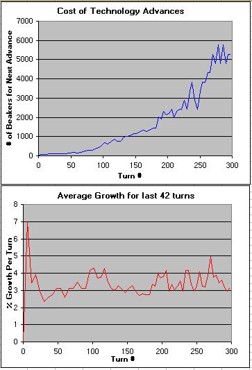 After computing the inflation for each 4 turn period of time (i.e. for each new tech), then we can take an average over the whole game, or if the results are disparate enough, then we can take an average over each Age and get some useful (though not perfect) concrete numbers.