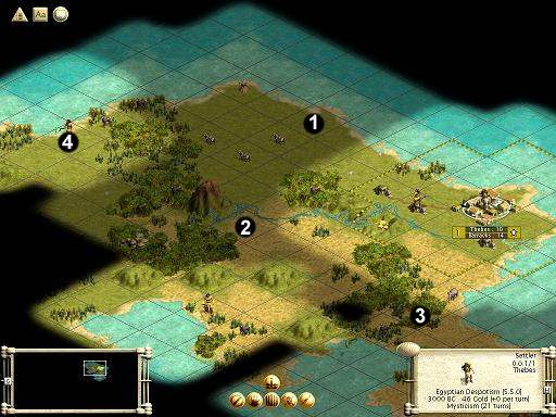 If you build a temporary city on the grassland just midway between #1 and #2, you have access to 2 cattles and 1 game: most juicy place for a settler/spearman city.
