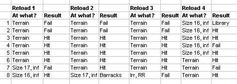 Some interesting observations here. If in a size one city w/ no improvements left the bombardment routines still try to hit population or improvements & automatically fail every time it 'picks' one of those two catagories to shoot at, well, that doesn't seem right. Small villages/towns without much in the way of buildings shouldn't provide that much cover. Better than open country, but not that much better.