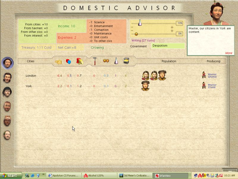 Umh, you are doing rather better at Emperor than I do. Maybe with a more practice and more adherence to sound strategy I could make the English work for me at higher levels too.
