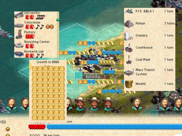 See pic. I don't know when it happened, but Philadelphia has somewhere lost its hospital, and doesn't let me build one again. As a result, the growth of the city is limited to size 13. Very strange problem, I don't have a clue what went wrong. It hasn't grown after the first turn, maybe this has something to do with it... (the year is 3350 BC, when a save would be needed).