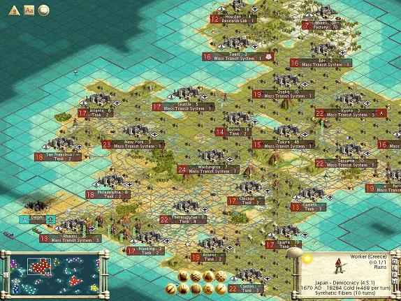 I was happy with how I played the early game for a rookie, but now think that an early GL should be spent on the Great Library ahead of the FP. The financial savings and opportunity to keep fighting with up-to-date units thanks to research is too great to ignore. GLs make the difference between hanging in there and being a contender throughout, which makes militaristic an irresistible trait. Given how many times I changed government, I don't see myself playing anything other than the Aztecs or Japan for a while at this level.
