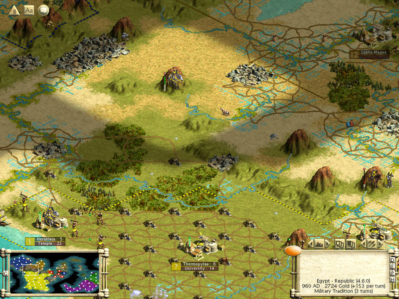 Given that enemy forces can only move 1 or 2 tiles per turn inside your borders, it will take them a minimum of 3 turns to reach either Memphis or Alexandria. This is more than enough time to muster a significant defense agains the AI (since their "sneak" attacks usually only include a couple of units). Your Musketmen are more valuable on the front, where they might actually see battle. My military is small because I use almost all my military units in every campaign.