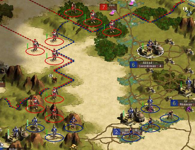 Rome sent his legions of doom toward 2 cities: Ashur and Akkad. Seeing a streamline of legions might look daunting, but I told my troops, "head to the hills and mountains and use the land to help your defense." The troops must have used my advice wisely as Rome's legions of doom suffered defeat after defeat trying to attack my fortified pikemen on the mountains and hills.