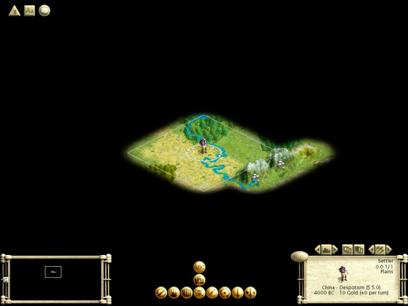 In case anyone wants to play for comparison without spoilers, I'll hold off on asking my questions until after the starting point screenshot and 4000BC savefile.