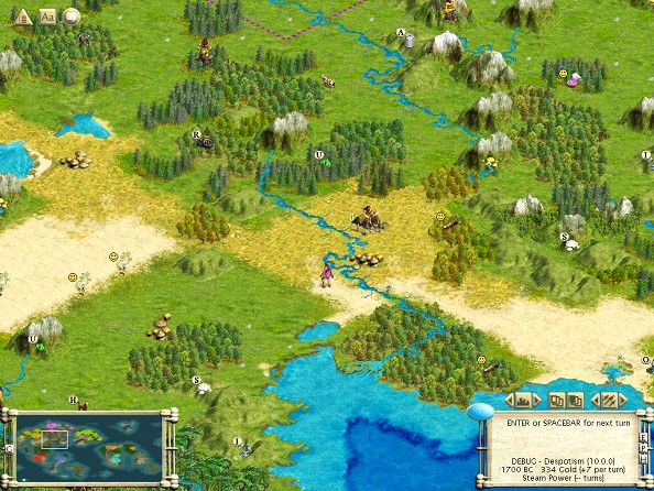 The attached screenshot is from a "barbarians random" game in debug mode. I presume the barbarians were "raging" because they were popping up pretty frequently (I never got to see an uprising to determine for certain). Babylon's attempted REXing was significantly crimped because of a nearby barbarian hut. A Babylonian settler would venture out, sense a barbarian, and rush back to Babylon. Even an escorted settler returned when faced with a barbarian. The AI of course enjoyed enormous combat bonuses against barbarians but refused to send out a warrior or two to "cleanse the land" of the threat. Take a look at the minimap and you can see that other civs have expanded to 3 or 4 cities. Babylon is still OCCing it, even though it has two settlers ready to go (but unwilling to venture out). This absoutely prevented Babylon from becoming a power -- the same thing happened to Germany, east of Babylon on its own island.