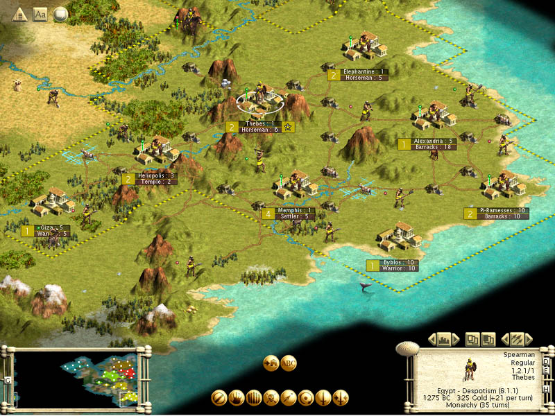 7. Finally, this has nothing to do with city placement, but I recommend you focus on growth a little more here. There is a lot of nice land North and West that you can exploit easily. One Settler pump in Thebes is not enough; get your other cities to produce a Settler when possible. This is assuming, of course, that you have the situation with the Ottmans under control.