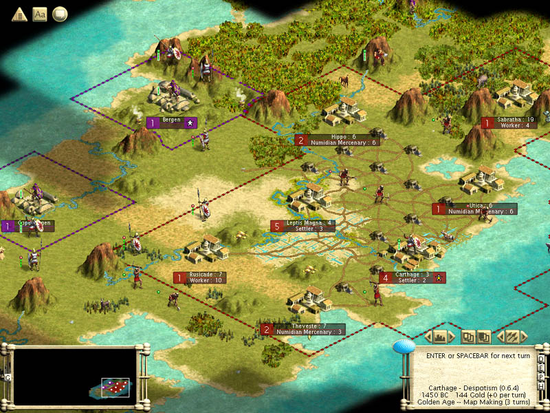 You could think of your civilization as a barbarian tribe intent to pillage and plunder while spreading like a horde with your “uncivilized” ways. As you capture cities, you raze them, and those that you don’t raze, you destroy those unnecessary improvements like courthouses and factories that take up space and cost money to keep up. You may also notice that your tribe is akin to a Civilization II barbarian tribe but with the ability to build more than one different kind of unit and also cities.