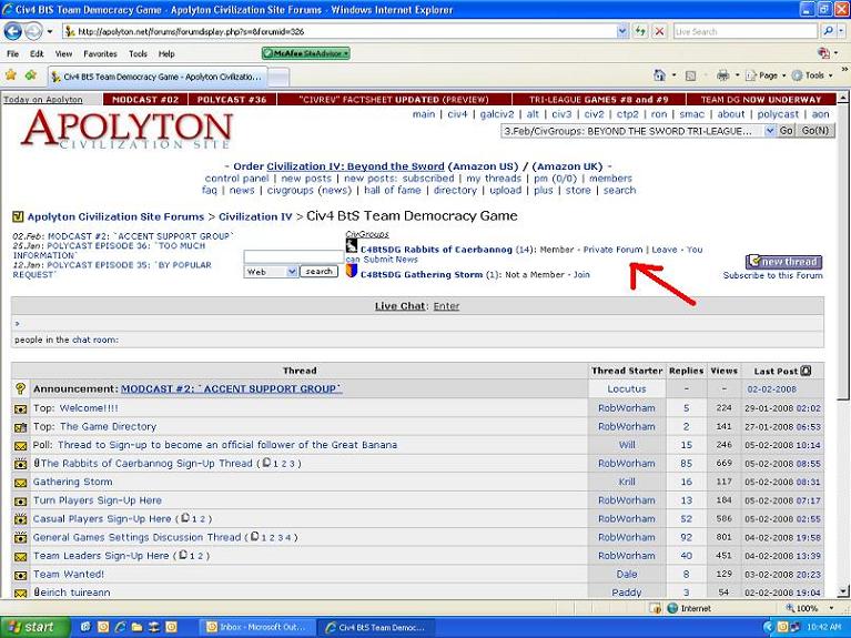 I'd be highly surprised if he does. The one thing I'm not sure about is staff members. Could Dale or Nugog please let me know if they have access to the Gathering Storm private forum? (Rob definitely has by default so I already disabled that for him).