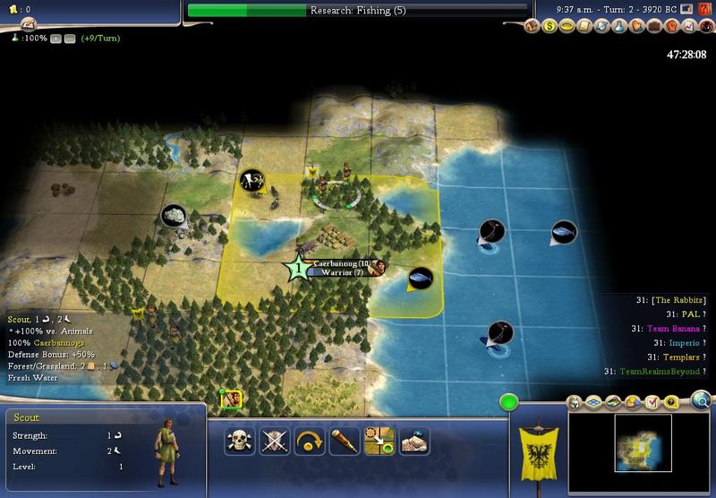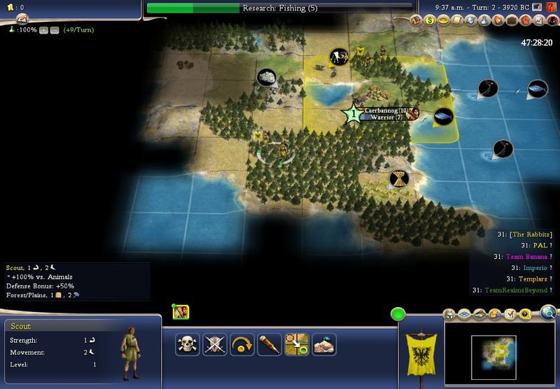 Won't the two scouts run into each other since the southern scout is going to have to either turn north (meeting our northern scout) or turn back west and head south, which wastes turns backtracking.Originally posted by Nugog