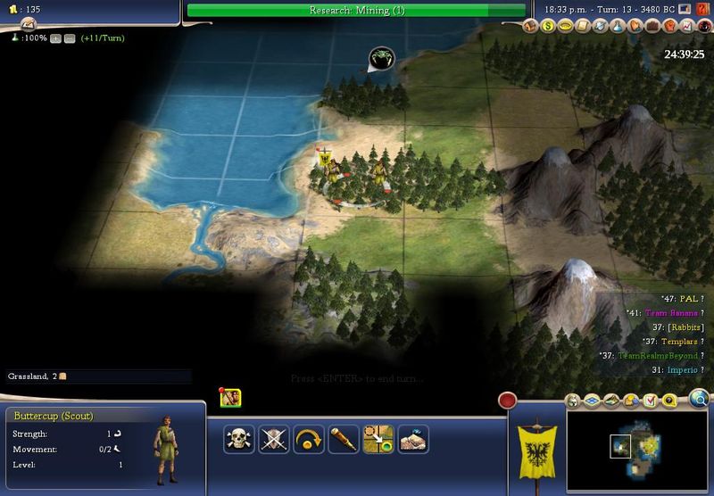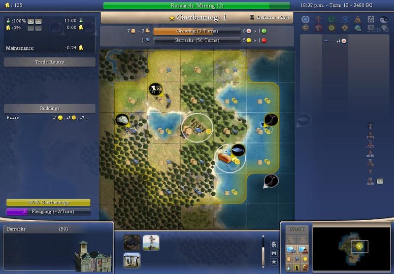 Caerbannog : Move workforce from 4-4 to 3. Start building Barracks (until size 2, then switch to worker)