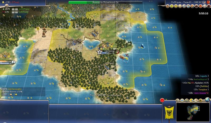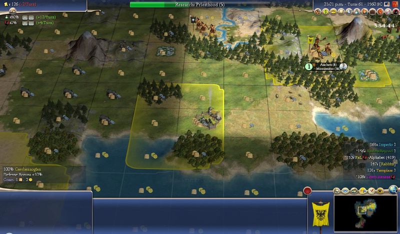 However, on the subject of libraries...we WILL be needing libraries sooner rather than later. With rapid expansion, a focus on the lower tree, and no gold producing resources tapped, our tech rate is going to be abysmal. Libraries and scientists do provide a solution.