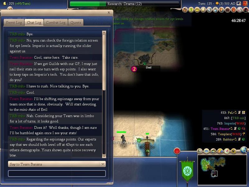 I propose that we recommend to Banana that they not lightbulb Guilds, but save the Great Engineer for the Taj Mahal instead. We now can't get Taj ourselves. But I think we can get Nat and trade it to Banana before PAL completes Taj. Better for us to hand Taj to Banana rather than for PAL to get it.