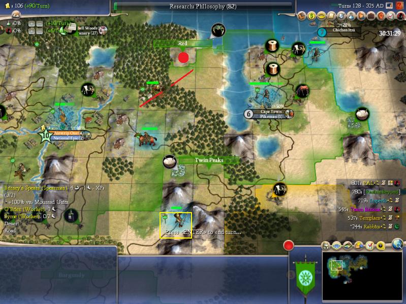 - Helmholtz should road first. Road + chop takes 5 turns in either order. The chop does no good until the granary is actually completed, which won't be on turns 4 and 5 from now. Road now does do good in the form of trade routes.