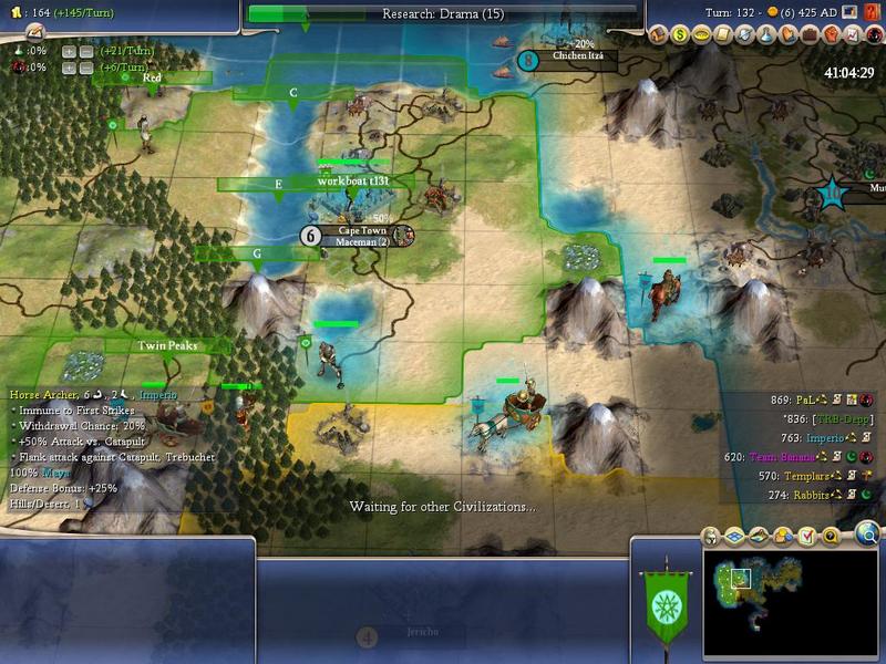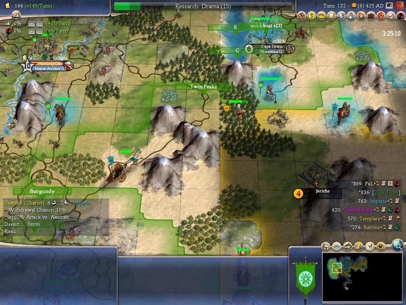 @Dreylin - I suppose it may be worthwhile. In MP we typically only divert units onto forested hills tiles, but then no one is silly enough to leave first-ring tiles forested in MP. The problem is we still don't have infinite units. With the 1/3 or so units we can spare to not be on Imperio-stack-watching duty we need to defend the south, defend the roads and cover our workers, and sit in Templars forest.