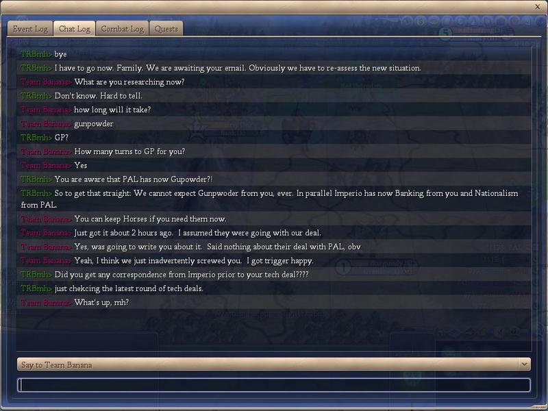 Still no news from Imperio - rather irritating. We have sent pms to them to try to get a decision before the end of the turn. Let us know if they contact you.