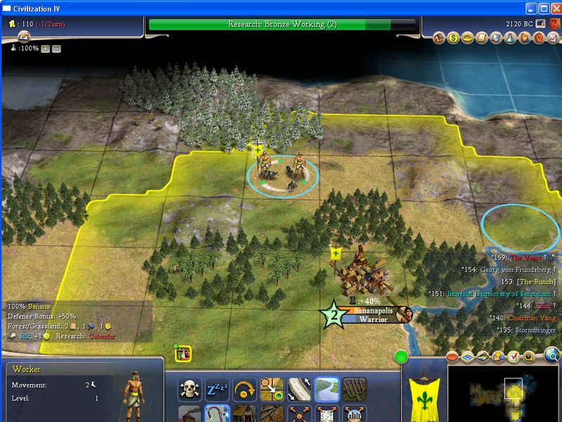 Bananapolis: 2 pop, 8T to grow,4T to build warrior;