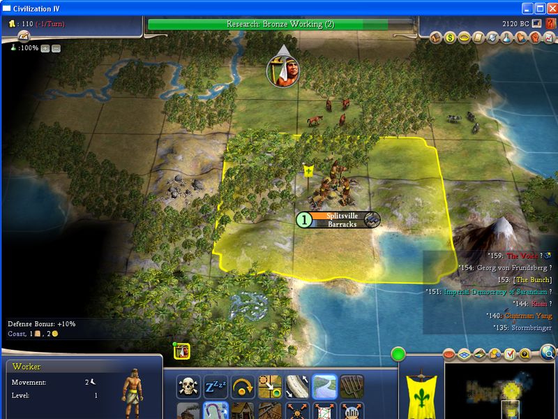Spitville: 1 pop,7T to grow, 27T to build barracks.