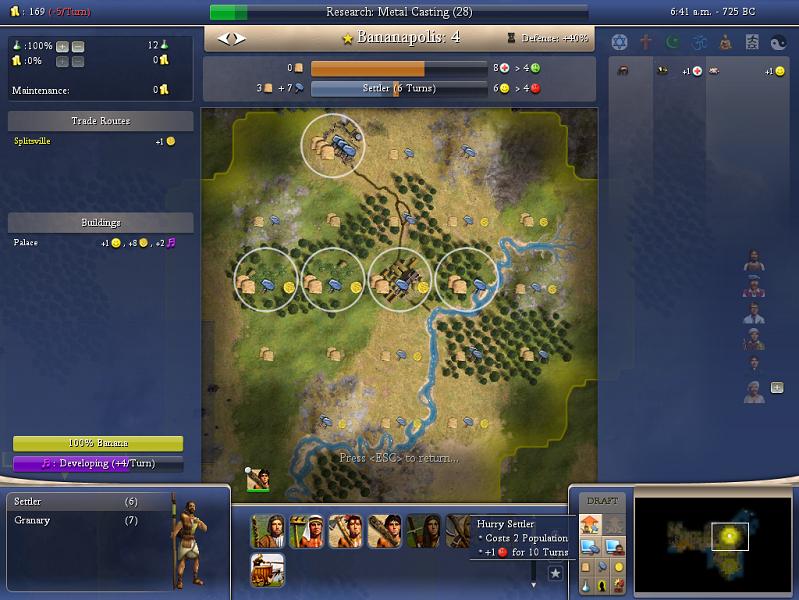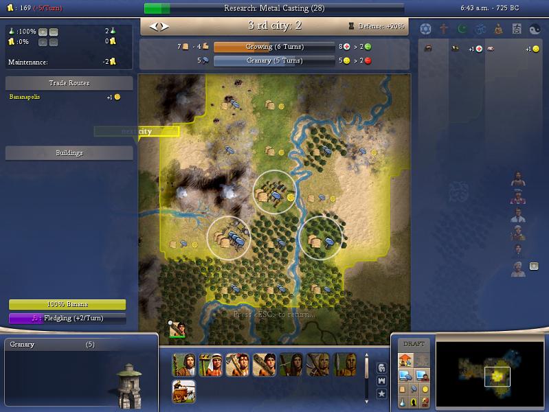 We have now 3 cities, 4 warriors and 3 workers. 28 turns to Metal