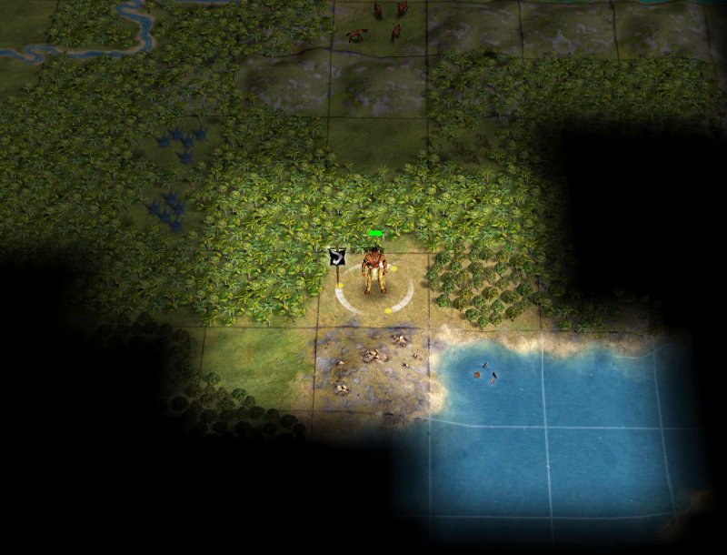 The gold hill 3-2 of us is a coastal tile so it will open up quite alot. We'll be better able to decide which way to move from there, but the tile 4 of said hill looks to be open land with forest 4 of that, so 4-4 for turn 34 seems like a good option. I agree that we should be heading west soon.