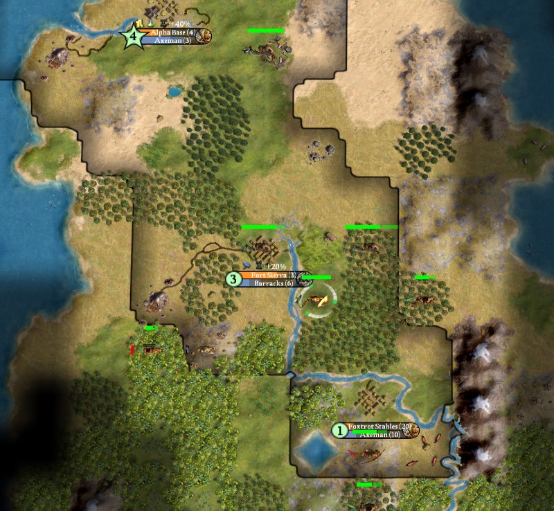 City-wise, Fort Sierra needs to start another axe. Also, we can speed up AB's axe build (2 turns instead of 3) by sacrificing the 6 food from the pig and putting that citizen on the plains hill.One who has a surplus of the unorthodox shall attain surpassing victories. - Sun Pin