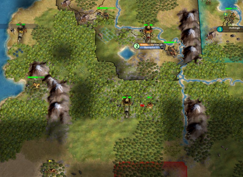 -Continue bringing stack around. If barb warrior is still on the hill, I suggest we move bring our stack 9 in hopes it'll attack (and consider going on the offensive if it remains) - could get some cheap XP