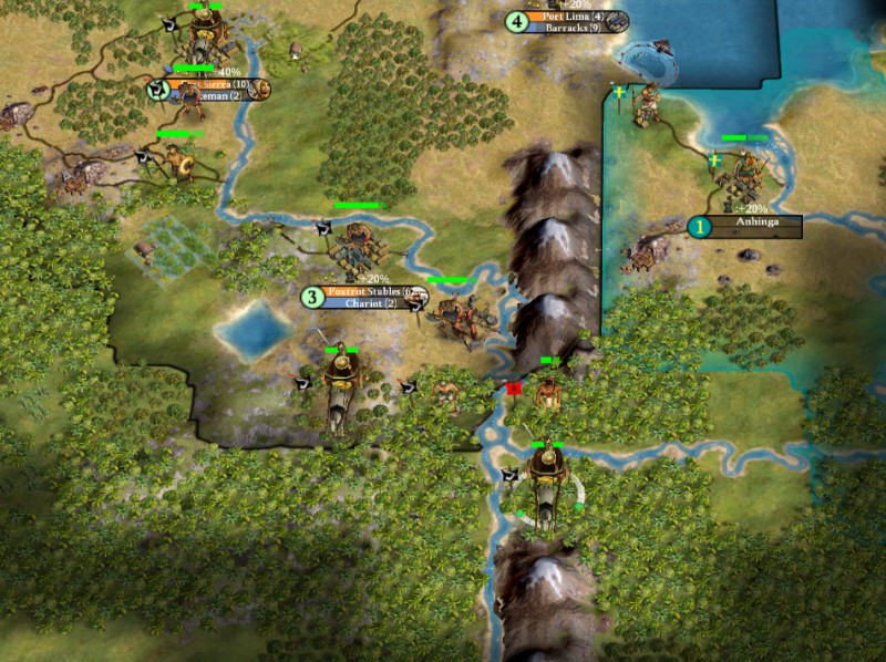 Also, Sarantium has an Archer just across from the scout. If Sarantium attacks (or otherwise moves into that space) they'll see the military buildup on our Horse tile. I'm gonna move those units back into Foxtrot.