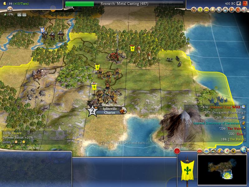I guess my delay in responding is evidence that continuing as a 1 city civ does not hold my interest. I could send another demand for peace but they don't even have the decency to reply with a "piss off". I'd love for them to offer some terms and have us turn them down or even accept and then act defiant - you know like Iraq for 10 years after the first Gulf War.