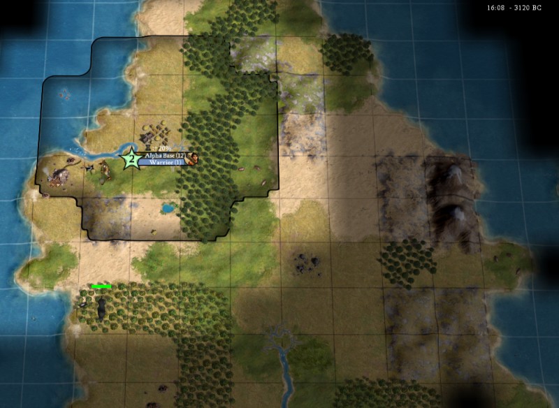 The turn after this, however, we will need to decide on a build. And two turns from now the worker will need orders. I think the worker is fairly straightforward since we won't have Animal Husbandry for some turns yet: chop a forest. I propose the one immediately east (6) of Alpha Base, since that will keep the worker away from the edges of our borders should someone's warrior come wandering past.