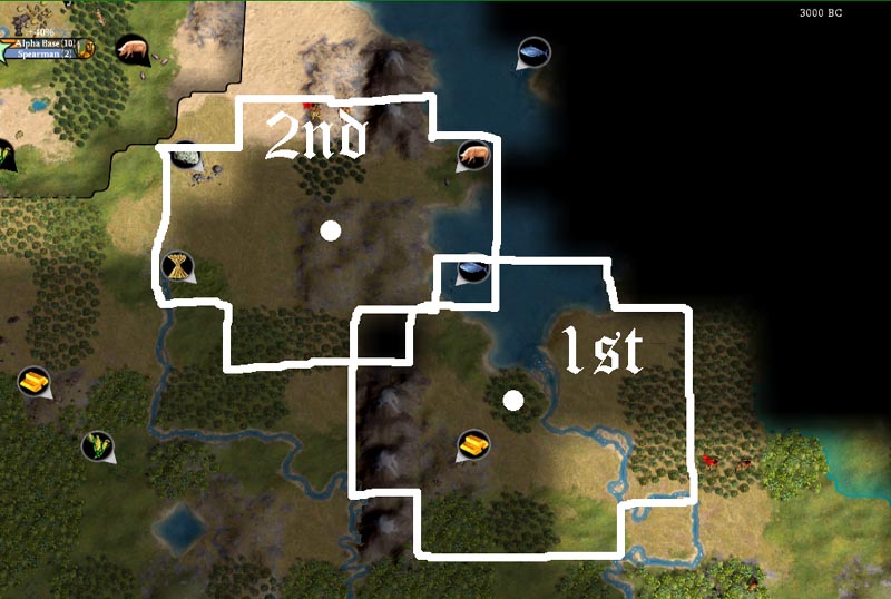 Now that we know where our neighbor is, perhaps we should do our best to block off some good territory. So I'll throw out this idea for a city placement.