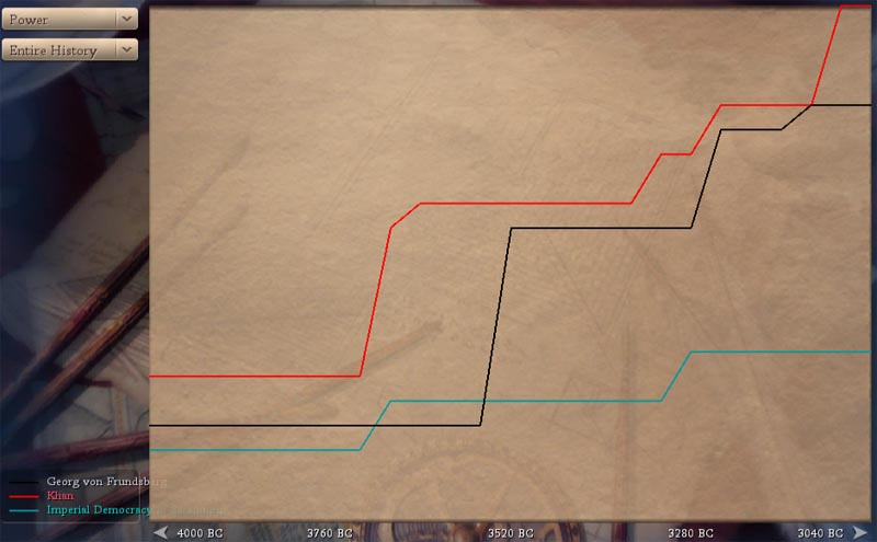 On the topic of the power graph, I'm not sure what goes into it. It's strange that we have more power than Sarantium when all we have is a scout, and last we saw their warrior had healed up fine... if it's military-based they should still be higher than us on the scale.