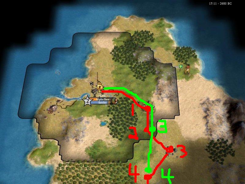 Should probably move the Spearmen out of AB this turn. 4 4 again looks good for the Scout. Move worker 4 to begin chop.