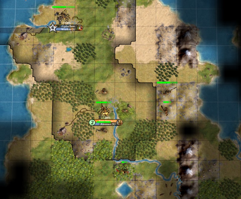Also, I'd suggest moving the axeman in the east 3. This will create temporary FoW, but it can move back the next turn, and the axe will be able to spot the edge of Sarantium's new city if they founded it very close. (And if it can't see it, we at least know this new Sarantium city isn't very close.)