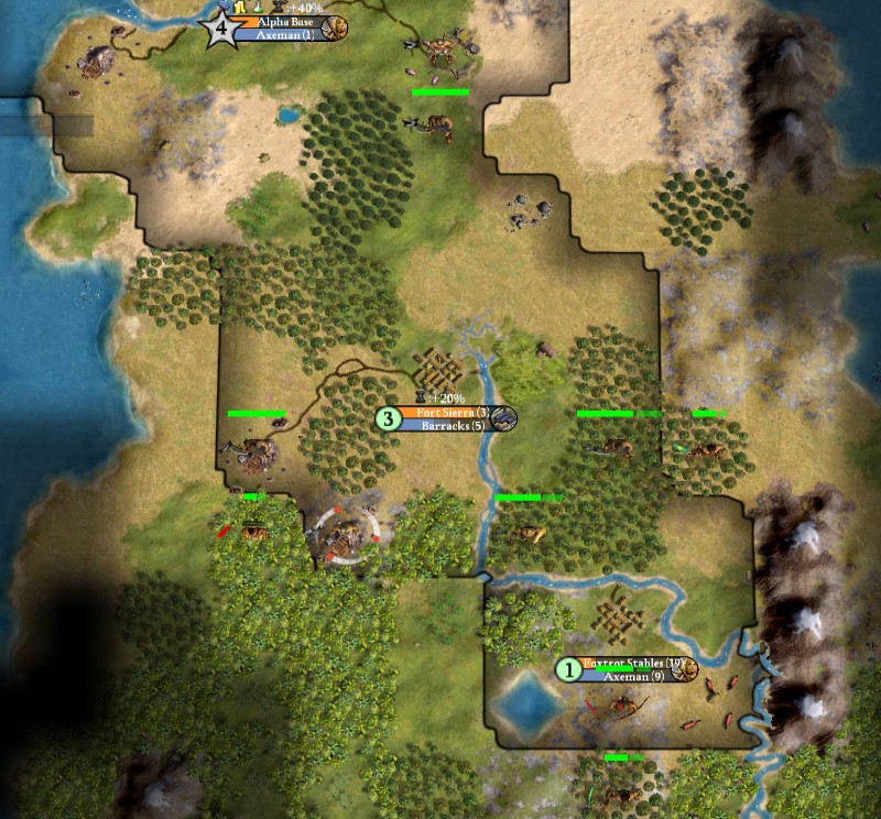 Otherwise, the axe near AB should continue moving south (2 probably), the worker near AB should move 2 and road, continuing to FS, and Rush the worker (on the gold hill) should road so we can get that +1 happiness.