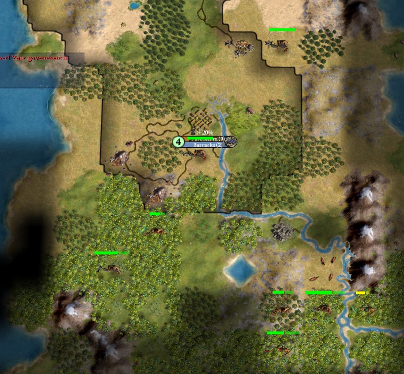 Speaking of the chop, I believe that means we'll have the barracks in 2, and another axe in 4 (if we chop the roaded forest, 5 if not) which should take care of the garrison situation in FS.