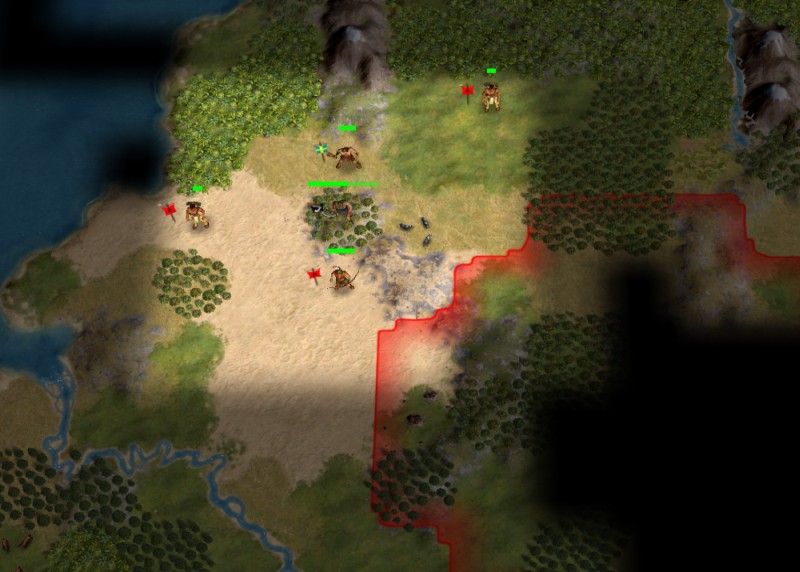 -Axe w/out experience or damage moved 2 onto the forest hill, uncovers Horde units. Axe and spear moved to join it.