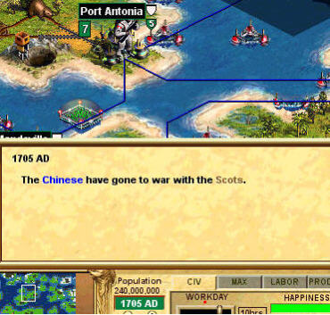 The people of Scotland are shocked and distressed at the terrible betrayal by the Chinese. The pacifistic country of Scotland has little in the way of modern military hardware. However the few crack troops that we do have, have been strategically retreated in order to save themselves for the defense of the main Scottish Cities. Saddam will not find all Scottish Cities undefended.