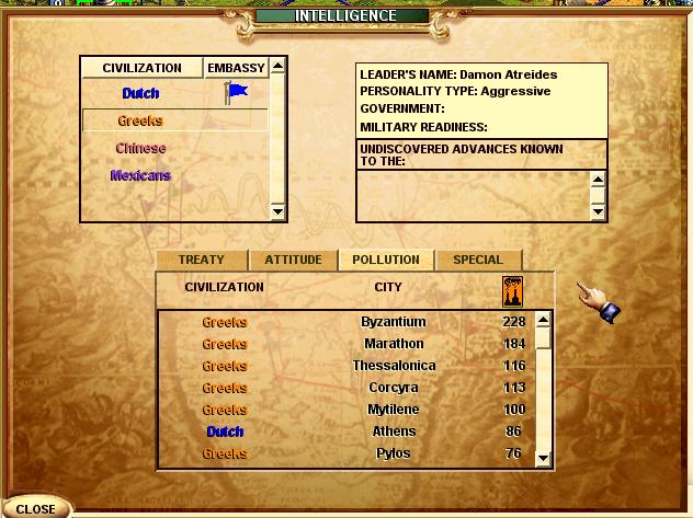 For starters, you could have been more diplomatic. With one(1) turn left till the end of the world as we know it, I hope the Canadians and Dutch stop this war now. The damage has been done, and what the 2 of you are doing is too litle too late. I am ashamed to admit the Dutch is my ally for their conplete disregard of a diplomatic solution over the futile efforts of a "Pollution Crusade". Tis a dark for the nations of this world. And the Good Mother will reflect this mistake.So one guy turns to another guy and says "T.A.I." His friends says "What?" He responds by saing "Think about it;)"