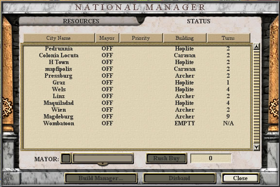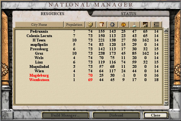 The brave soldiers of Lemuria have retaken Wombatoon after the treacherous Germans' betrayal. But the times are difficult as we have to wage a war on two fronts, our cities are thus mainly required to produce the military units that will lead our nation to the final victory.