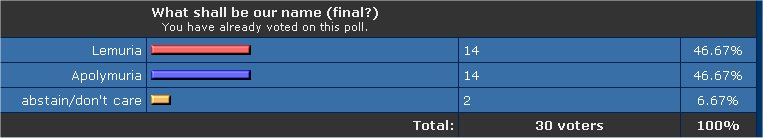 Lemuria still wins. Non-citizen voted Apolymuria.