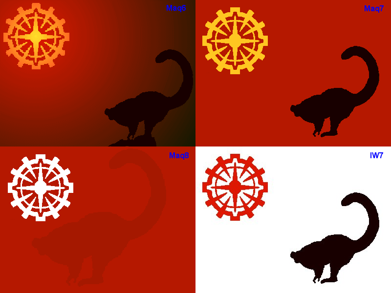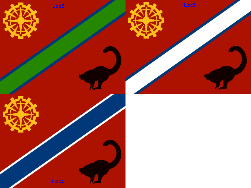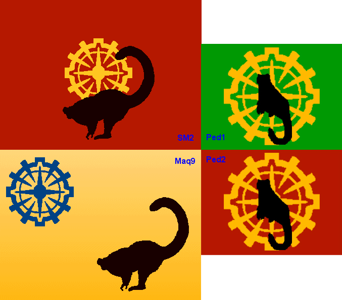The idea is that every voter gets (up to) 50 points to hand out, you may distribute them between the flags listed below however you want, except that you can give at most 20 points to any one flag. So if you really like flag IW5, give it 20 points. If you think Maq5, Loc2 and Ped2 are also kind of nice, you could give them 10 points each. Any other distribution is fine as well of course, whatever you want. The winner will be the flag which has the most points after about a week or so (I may make it two weeks or whatever, depending on how the voting goes). If two or more flags are rather close, we'll have an extra, final poll between those two/three flags with the most points. Whichever flag wins this poll will be the official flag of Lemuria/Apolymuria.