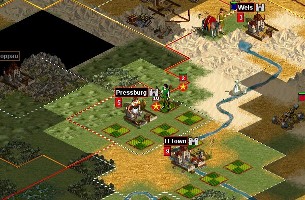 7. One Archer from Pedrunnia was East. Another four units should follow. Unfortunatly we can't expell the settler this turn and I am afraid, that it will escape as it ignores ZOC. Well Pedrunn as you are online what do you think about it?