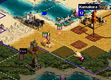 Troops advance towards Nara (size 17) and find a stack of 9 units parked outside of the city.