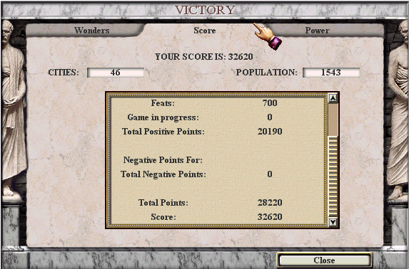 But yeah, the games are ranked by end year and end score. Best scores per victory type are highlighted on the result page, best overall scores enter the Hall of Fame (Example).