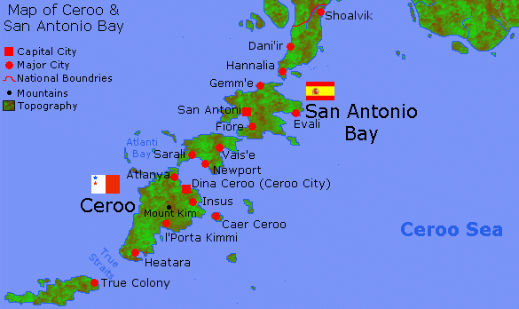 Smaller seas will not be shown on the main map (it is cluttered enough already!) but can be named and displayed as with the map of Ceroo below)