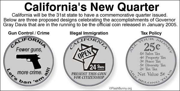 I always thought the commemerative quarter should show an illegal alien climbing over the border fence while a border patrol officer sat there eating donuts in front of a sign which read "out on coffee break".