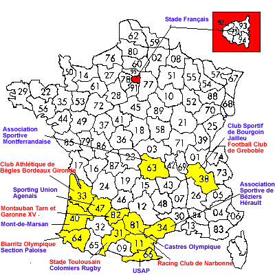 Here is the map of the French Top16 clubs (adding the locations of the Pro D2 clubs - second division - would be even more eloquent):